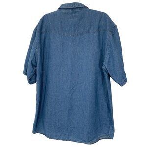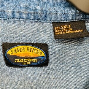 Sandy River Jeans Co. Chambray Shirt Mens 2XL Tall Blue Pearl Snap Buttons Vtg