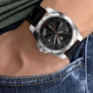 Band: Black Genuine Leather Rally Racing 3-Hole with Oversized Buckle