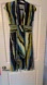 Eye-catching dress with a V-neck and dynamic stripes. Features a blend of blue, yellow, and black. This dress is extremely flattering and forgiving - it’s just about knee length, has a ruched detail at waist and a sash that hangs in front which is also flattering