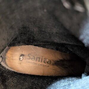 Sanita Black Suede Pattern Mid Calf Wooden Clog Heel Boots Women Size 37