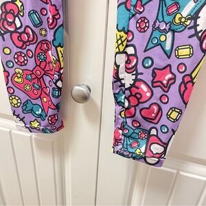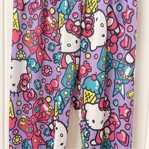 Authentic and adorable Hello Kitty leggings featuring a fun pink Hello Kitty, ice cream, and gem pattern on a soft purple base. These high-waisted leggings are super comfy and reminiscent of the iconic 2010s galaxy leggings that took over Tumblr. Originally purchased from an official Sanrio store in Las Vegas.