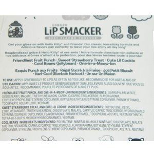 Details: This listing is for a package of 5 “Sanrio“ Liquid Hello Kitty Lip Smacker lip Glosses in a non-sticky consistency. As you will see in the pictures each tube has a picture of a different “Hello Kitty” friends on each tub in which 1 tub includes “Hello Kitty”