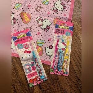 Sanrio Hello Kitty Pink Pocket Square Handkerchief & Toothbrush Lot