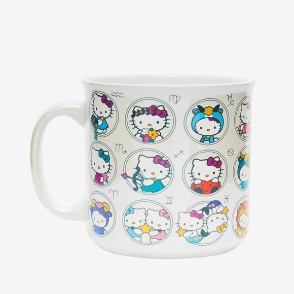 No matter what star sign you are, Hello Kitty's got you covered with this mug! Rep your love for horoscopes with this Hello Kitty zodiac camper mug, featuring Hello Kitty dressed up like each horoscope's sign all around.