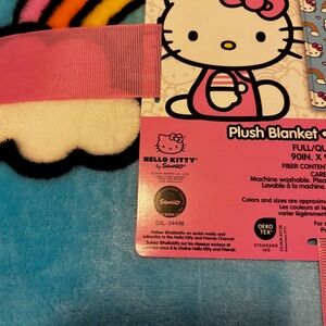 Sanrio Hello Kitty blue and rainbow blanket throw size Queen new with tags. Super soft fleece plush, 90’’ x 90’’ (229 cm x 229 cm), fits a size queen bed. This item comes from a smoke free, pets friendly home. Recycled bags/box used when possible. Please, let me know if you'd like any additional info. Thanks for watching!