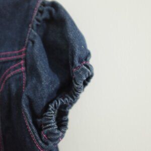 This is a Hello Kitty denim dress for a young girl. Key features include: Dark blue denim fabric Short cap sleeves Button-up front Hello Kitty logo embroidered on the chest Hello Kitty character embroidery with hearts design Pink fabric belt with Hello Kitty pattern Gathered/ruffled skirt portion Excellent used condition Listed under various sizes only one 6x is available Make an offer