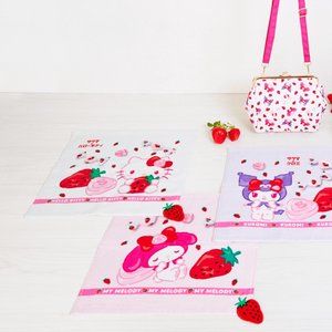 Sanrio x Sakuma Strawberry Milk Candy collaboration kuji white hand towel with Hello Kitty on the front. Imported from Japan.