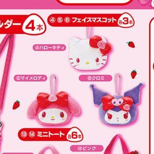Sanrio x Sakuma Strawberry Milk Candy collaboration kuji plush Kuromi mascot with silvertone ball chain. Imported from Japan.