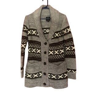 Sansara Fair Isle Cardigan Sweater Gray Women’s Small