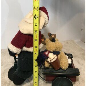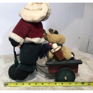 Santa Claus Riding a Bike & Reindeer Plush Toy Wagon 13" Tall 11" Wide