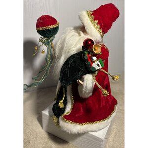 Santa Claus Tree Topper Figurine 14" Velvet Red & Green Gold Toy Bag Ornaments