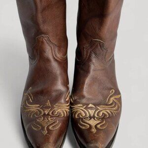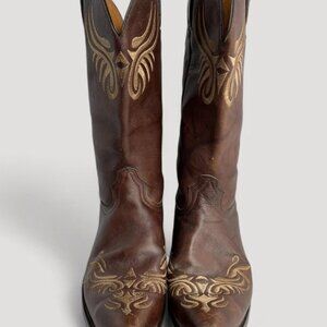 Santa Fe Brown Embroidered Cowboy Western Leather Boots Men's 11.5 D