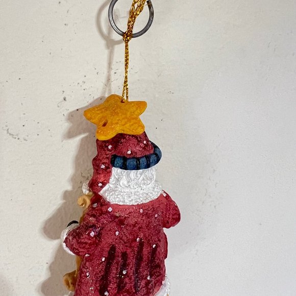 This Santa figurine wind chime is made with intricate details. Santa is holding a list, and in front, there's a festive inscription that reads "Checking the List." Santa hangs from a star, adding a touch of whimsy and holiday vibes. This beautiful Santa Wind chime is great for Christmas decor and on a christmas tree. The wind chime also adds a beautiful sound when there's a breeze.