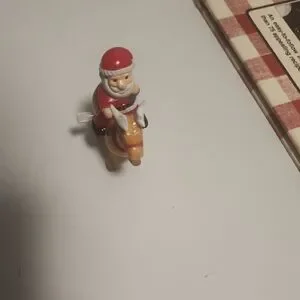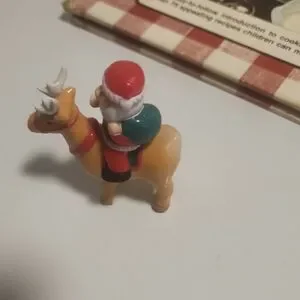 Add festive charm to your home with this delightful Santa riding a reindeer decoration. Perfect for holiday displays.