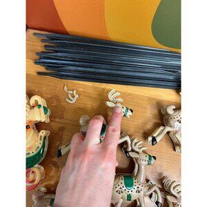 Vintage 1970s hard plastic Santa and reindeer sleigh Christmas figurines small decoration JYSN light covers - two broken