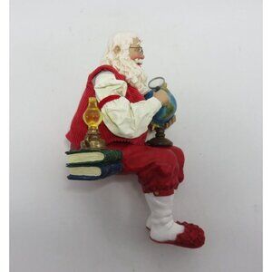 Santa with Reading Glasses Globe and Magnifying Glass Shelf Sitter Vintage 10"
