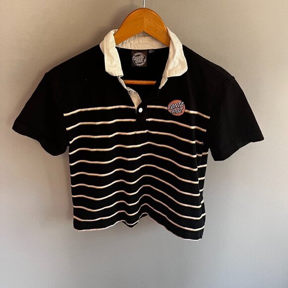 Santa-Cruz T-shirt Collared Striped Black & White Skateboards Size XS