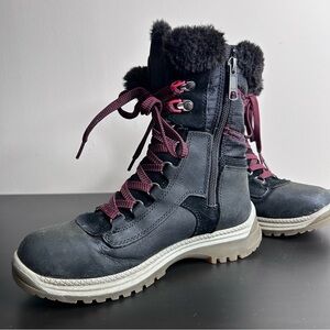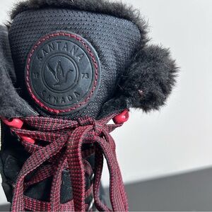 Santana Canada Mio Leather Snow Boot Low Calf Faux Fur Black Red Size 6