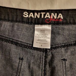 Black denim skirt by Santana. Size 6 - measurements shown in photos. In very good condition - no stains, holes or tears.