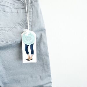 New With Tags: Santana Jeans Tummy Control Light Blue Straight Leg Crop Belted Women's 6. Classic 5-pocket styling. Tummy control construction. Branded button closure and zip fly. Flattering leg silhouette. Please see photos for approximate measurements.