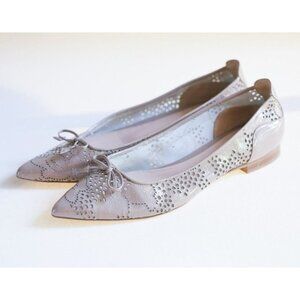 Sante Borella Nude Laser Cut Out Pointy Toe Bow Accent Flats 40.