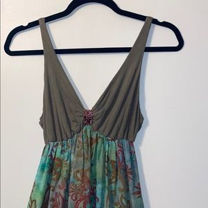V neck Tiered fabric on bodice 100% rayon Appoximate measurements Pit to pit 13 Length 33