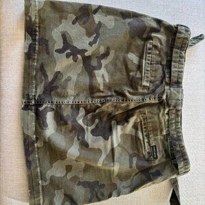 Excellent Condition. Sanctuary Camo/Army/Camouflage Green Denim Skirt. Front Tieable Belt.