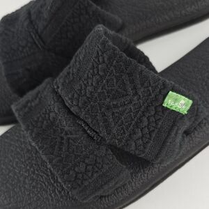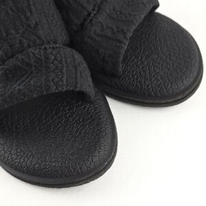 Sanuk Women's Yoga Mat Capri Black Textile Flat Slip On Sandals Cushioned Sz 6