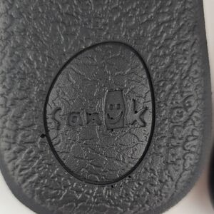 Excellent pre-owned condition, Sanuk women's yoga mat Capri black textile flat lightweight slip on sandals with padded cushioned insole, size 6.