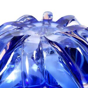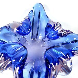 Sanyu Art Glass Decorative Bowl Blue and Clear with Pink Tint Heavy Vintage Japanese Mid Century Modern Home Decor Candle Holder