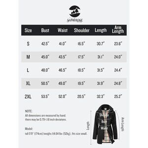 Size Recommend: This raincoat has a casual fit and big enough, if you're not layering, we recommend choosing one size down. Model in the picture is 5'9" (174cm) tall and weighs 114.64 lbs (52kg), she fits size small. Please note that our size measurements refer to jacket itself, not body measurements.