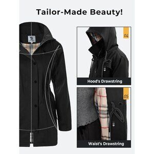 SaphiRose Women's Black Waterproof Rain Long Lined Outdoor Raincoat with Hood