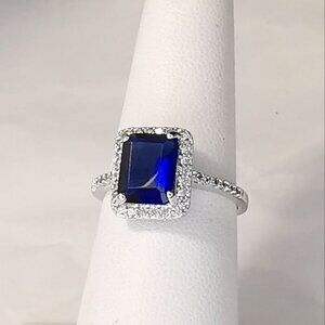 Sapphire CZ with halo 14k white gold size 8 🆕