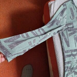 Sapphire (light coloured blue/green) Graffiti Long Sleeve Pullover Top. All tags removed. Guessing size Medium. Lightweight.