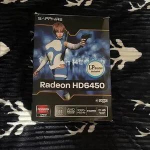 Sapphire Radeon HD 6450 graphics card with LP bracket included. Features AMD HD3D and 1080p full HD support.