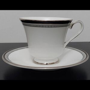 Sarabande by ROYAL DOULTON Teacup and Saucer in White Bone China Platinum Trim