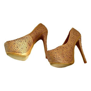 Sarah Chole Gold Stiletto Heels Glitter Shoes Sz 8 M 5 inch Platform
