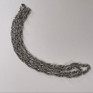 Long silver tone vintage Sarah Coventry made in Canada. This necklace is in great condition and timeless with a loose twisted rip design. This necklace has proven the test of time and still dazzles. Wear alone or layered with other necklaces.