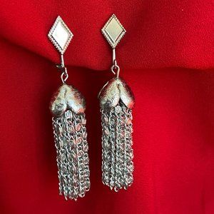 Sarah Coventry Silver Tone Chain Tassel Dangle Clip-On Earrings