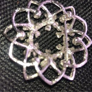 Sarah Coventry silver brooch with cobalt blue and emerald green gems.