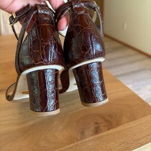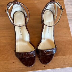 Sarah Flint Perfect Block Sandal, 60mm, colour: Espresso Croc Embossed Calf