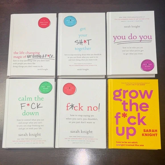 Set of six Sarah Knight books. Includes titles The life changing magic of not giving a f*ck, Get Your Sh*t Together, you do you, Calm the F*ck Down, f*ck no and grow the f*ck up