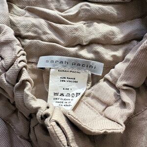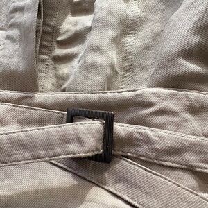 Stylish blouse with a belted waist. Features buttoned cuffs and a sleek design.
