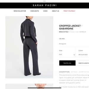 Sarah Pacini Crop Blazer Asymmetrical Collar Gray Wool blend Business Casual S