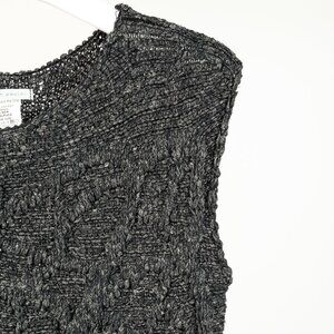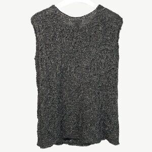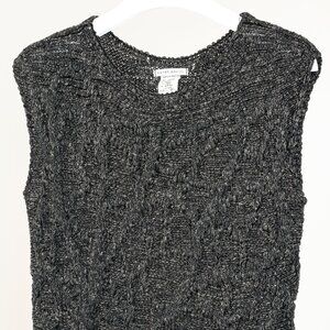 Sarah Pacini Green-Black-Gold Marled Cable-Knit Sleeveless Vest