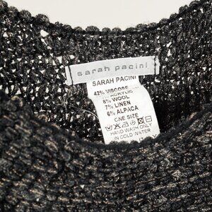 This Sarah Pacini Green-Black-Gold Marled Cable-Knit Sleeveless Vest is a stylish addition to your wardrobe. With a sleeveless design and roundneck, it offers comfort and a versatile look. Made with a high-quality blend of materials, it provides long-lasting wear and a chic aesthetic. Perfect for any occasion.