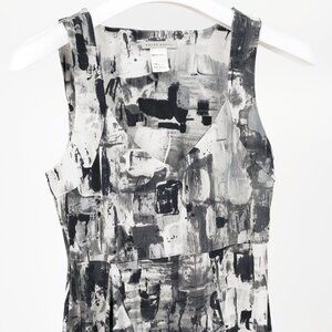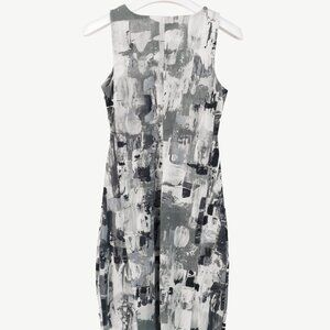 Made in Italy, this dress from Sarah Pacini is crafted with a grey abstract-print jersey, and features a sleeveless design, a V-shaped neckline, an empire waist, asymmetrical draping on the front, and a knee-length hem.