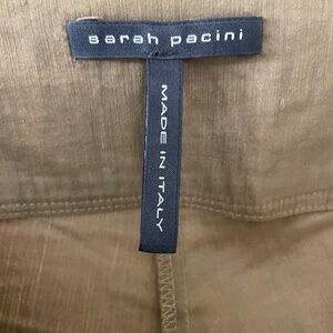 Sarah Pacini Linen blend Sophie slim pants with a rolled hem and wide waistband.