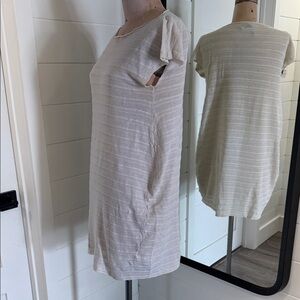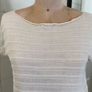Chic off-white knit tunic with subtle texture. Cap sleeves and relaxed fit. Ideal for versatile styling. Layer with your favourite tank top and leggings!