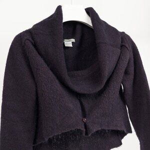 Sarah Pacini Purple Wool-Blend Knit Cowl-Neck Cropped Sweater